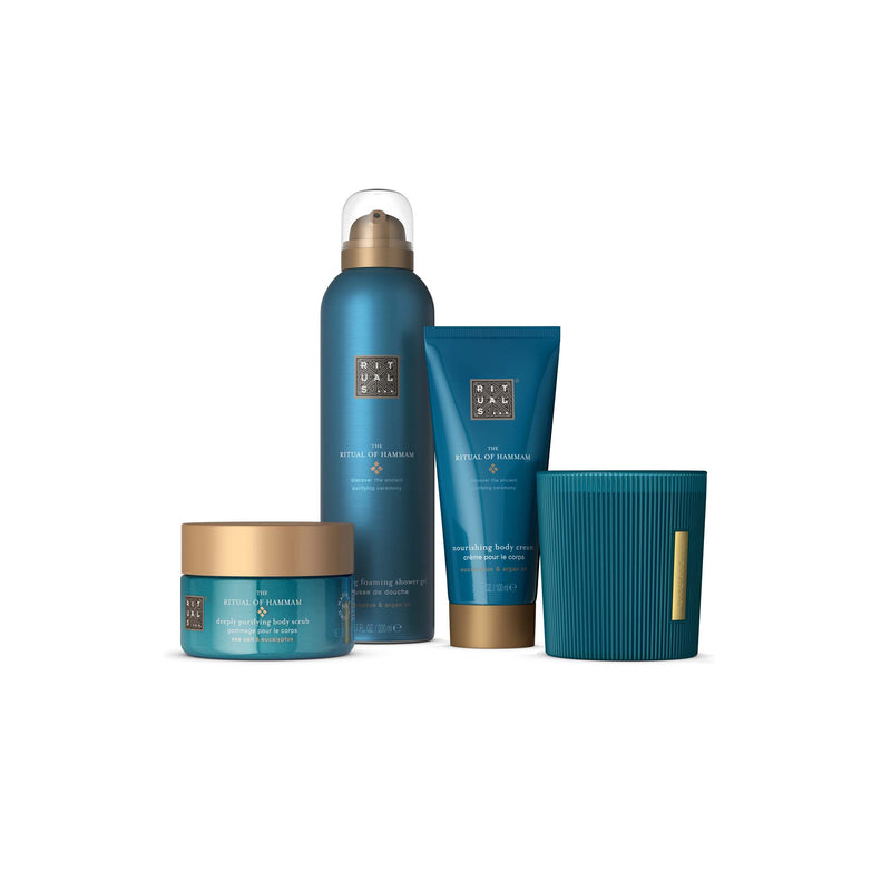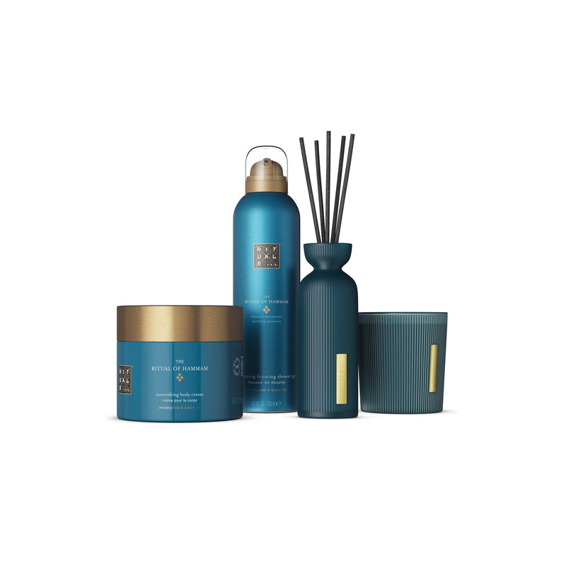 The Ritual of Hammam to nowoczesna interpretacja jednej z najstarszych tradycji oczyszczających świata, inspirowana autentyczną ceremonią tureckiej łaźni parowej, która oczyszcza zarówno ciało, jak i duszę. Ta luksusowa kolekcja składa się z ponad 90% składników naturalnego pochodzenia, głównie odświeżającego eukaliptusa i odżywczego oleju arganowego, które tworzą orzeźwiającą kompozycję zapachową przypominającą spa. Produkty obejmują kompletny rytuał oczyszczający - od czarnego mydła Beldi i błota do ciała, poprzez peeling z rękawicą Kessa, aż po kremy nawilżające, żele pod prysznic, świece zapachowe i patyczki zapachowe. Eukaliptus znany jest ze swoich energetyzujących właściwości i świeżego aromatu, podczas gdy olej arganowy z marokańskiego "drzewa piękności" bogaty w witaminę E nawilża i witalnie oddziałuje na skórę. Wybierz The Ritual of Hammam i przekształć swoją łazienkę w prywatne hammam, gdzie każda kąpiel stanie się oczyszczającą ceremonią relaksu, która odświeży Twoje ciało i oczyści umysł z codziennych trosk.
