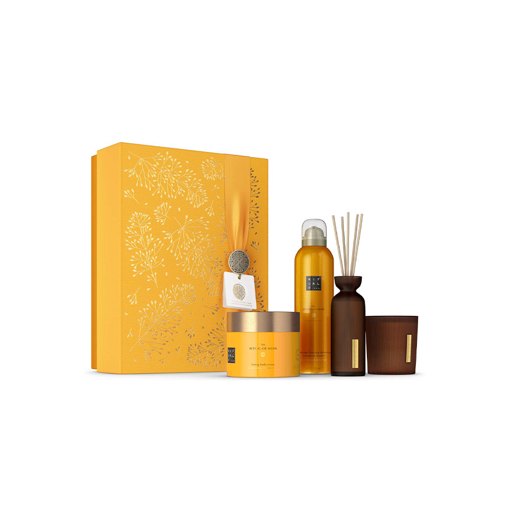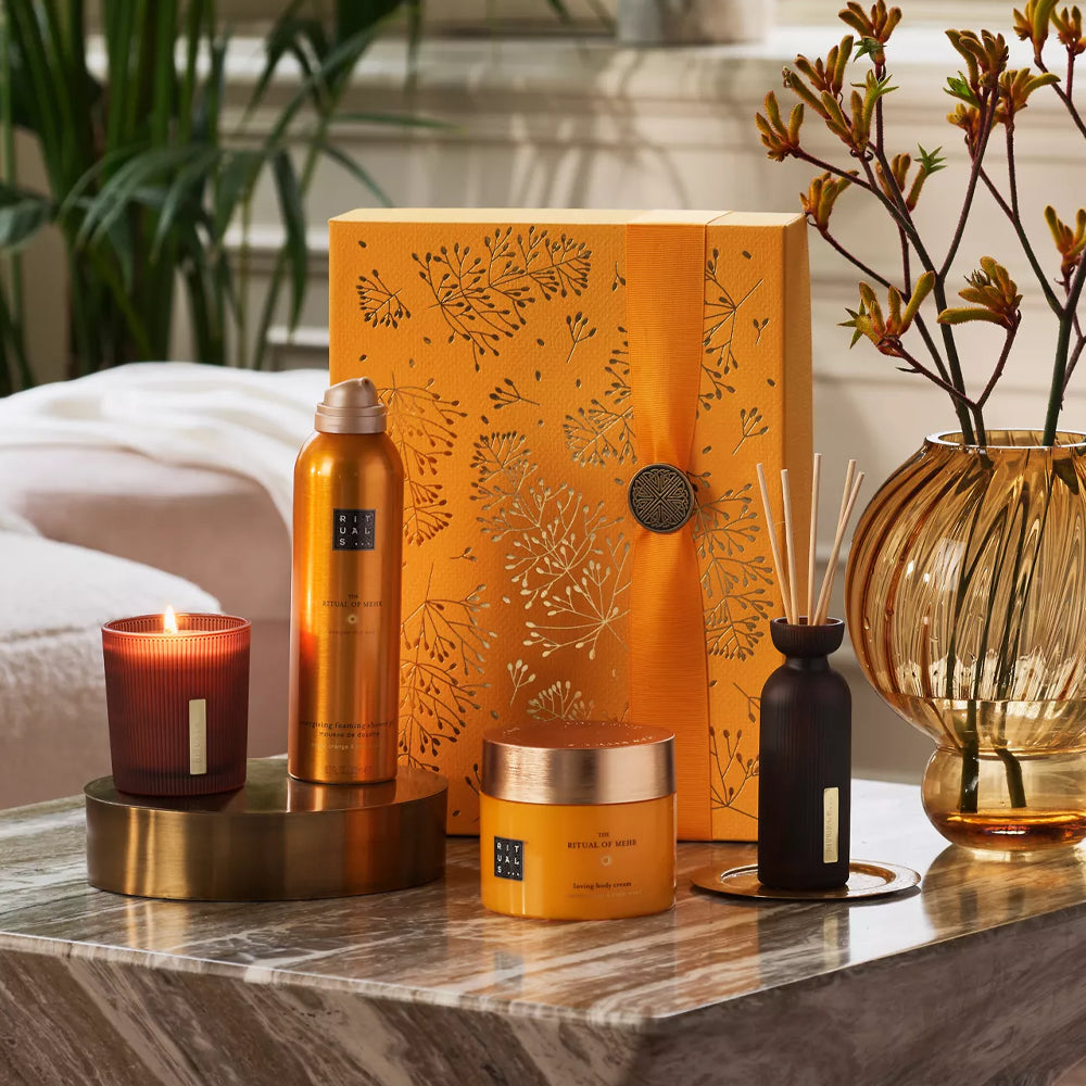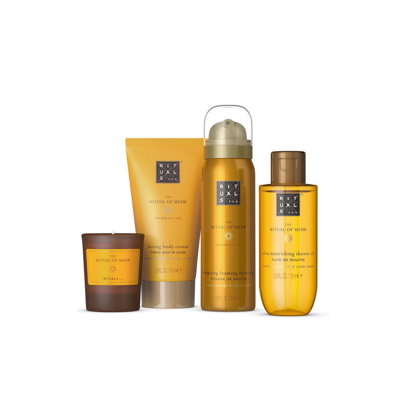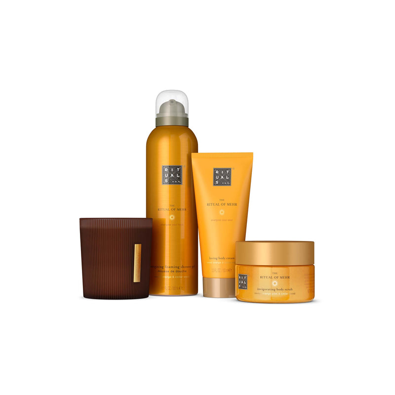 The Ritual of Mehr to najnowsza kolekcja Rituals, która wniesie słoneczną energię do Twojej codziennej pielęgnacji. Inspirowana słońcem ("Mehr"), ta energetyzująca linia produktów łączy orzeźwiający zapach słodkiej pomarańczy z kojącym drzewem cedrowym, tworząc kompozycję, która poprawia nastrój i wypełnia serce szczęściem. Każdy produkt w tej kolekcji został stworzony, aby przekształcić Twoją rutynę pielęgnacyjną w luksusowy rytuał relaksu. Ta energetyzująca gama zawiera olej pochodzący z majestatycznego cedru, znanego z właściwości kojących ciało i umysł, połączony ze świeżym i soczystym aromatem słodkiej pomarańczy. Dostępne są zarówno zestawy prezentowe w eleganckich opakowaniach origami, jak i pojedyncze produkty - od żeli pod prysznic i olejów do ciała, po świece zapachowe i mgiełki do włosów i ciała. Wybierz The Ritual of Mehr i pozwól, aby każdy dzień przynosił Ci słoneczną dawkę energii i pozytywnych wibracji, które zastosujesz w swoim zabieganym, nowoczesnym życiu.