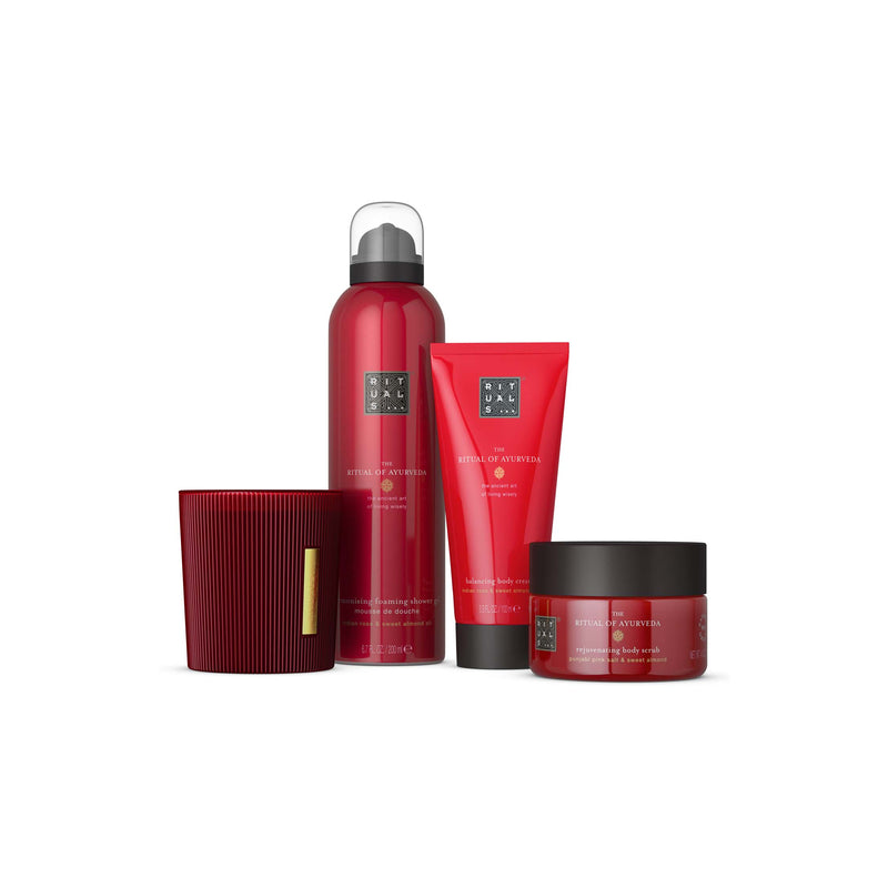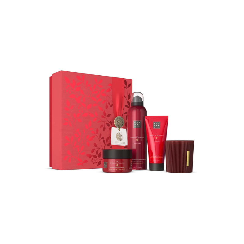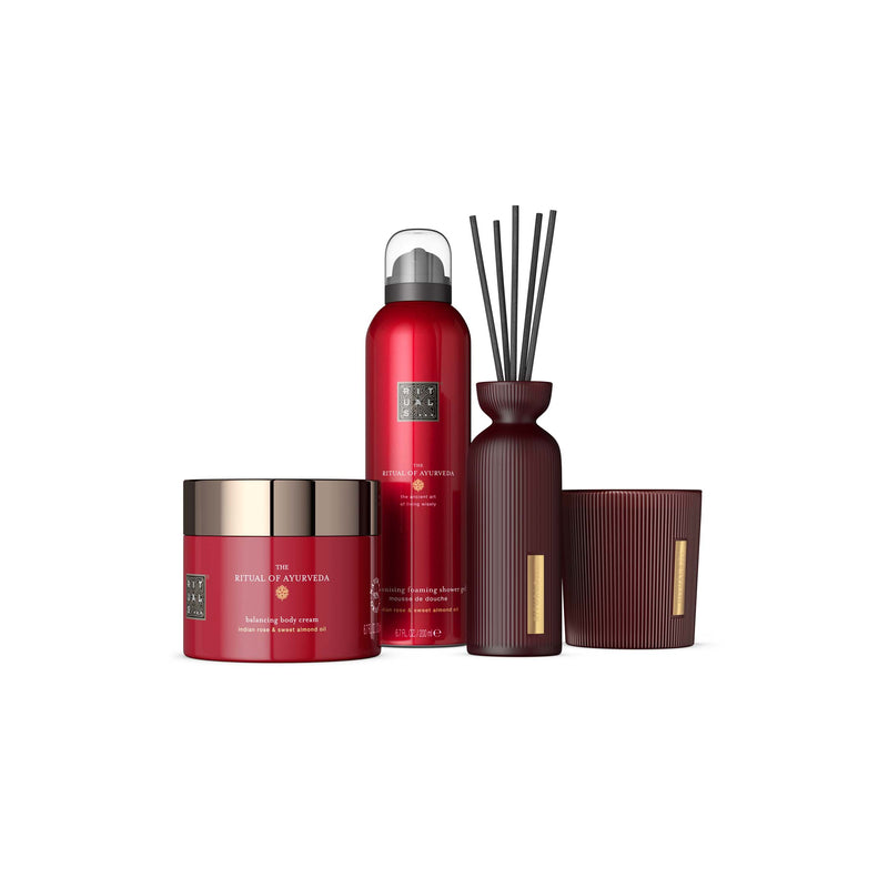 The Ritual of Ayurveda to luksusowa kolekcja Rituals inspirowana starożytną indyjską nauką o życiu, która pomaga przywrócić równowagę między ciałem, umysłem i duszą poprzez oczyszczanie i odżywianie energii życiowej. Ta harmonizująca linia produktów została wzbogacona o kojący olej ze słodkich migdałów i delikatną indyjską różę, tworząc słodką, kwiatową kompozycję zapachową o nutach orzechowych i owocowych, która działa kojąco na wszystkie zmysły. Kolekcja obejmuje bogaty wybór produktów do pielęgnacji ciała i domu - od luksusowych olejów pod prysznic i nawilżających kremów do ciała, po suche olejki w sprayu, patyczki zapachowe i świece aromatyczne. Formuły zawierają trio ajurwedyjskich olejów - odżywczy olej ze słodkich migdałów, kojący olej moringa o właściwościach przeciwzapalnych oraz nawilżający olej kokosowy, które zapewniają głębokie nawilżenie i ochronę skóry. Wybierz The Ritual of Ayurveda i stwórz swój osobisty rytual wellness oparty na tysiącletniej mądrości Wschodu, który przywróci harmonię Twojemu ciału i umysłowi, pozostawiając skórę miękką, jedwabistą i otoczoną zmysłowym aromatem indyjskich róż.